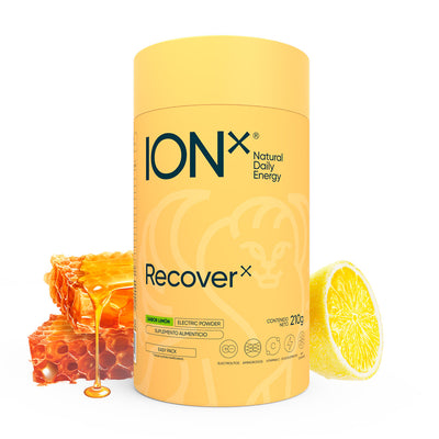 ION X Recover es la mezcla para deportistas que buscan una hidratación con enfoque de pre y post-entreno. Aquí los minerales van primero: 7 electrolitos esenciales con vitamina C alcalina, el aminoácido L-lisina y espirulina. El dulzor es natural—miel de abeja orgánica y limón en polvo—por eso no usamos edulcorantes artificiales ni añadimos colorantes o conservadores. Además, es sin cafeína.
