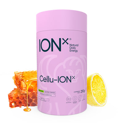 Cellu ion | Curcuma + L-lisina | Polvo para bebida isotónica que nutre e hidrata tu piel | Endulzado Miel De Abeja Orgánica Ni Edulcorantes Artificiales Sin Cafeína - Sabor Limón | 50 Porciones 500g
